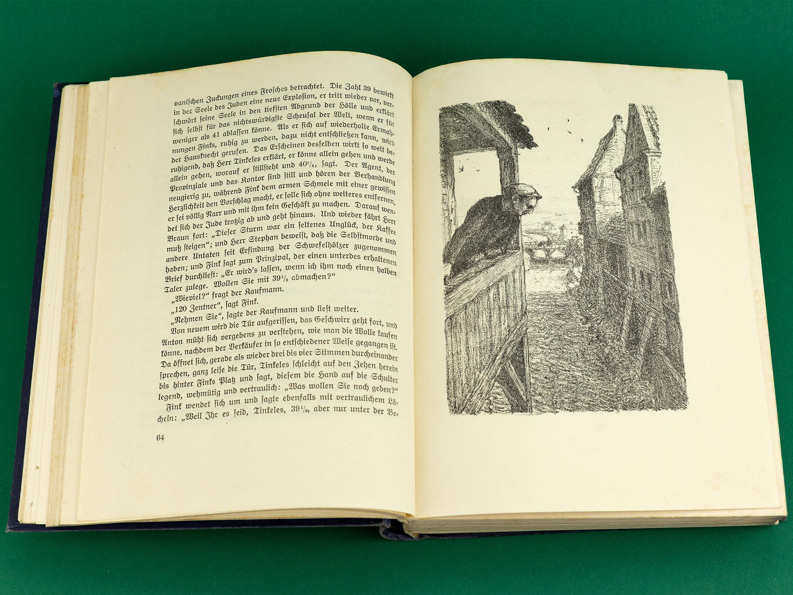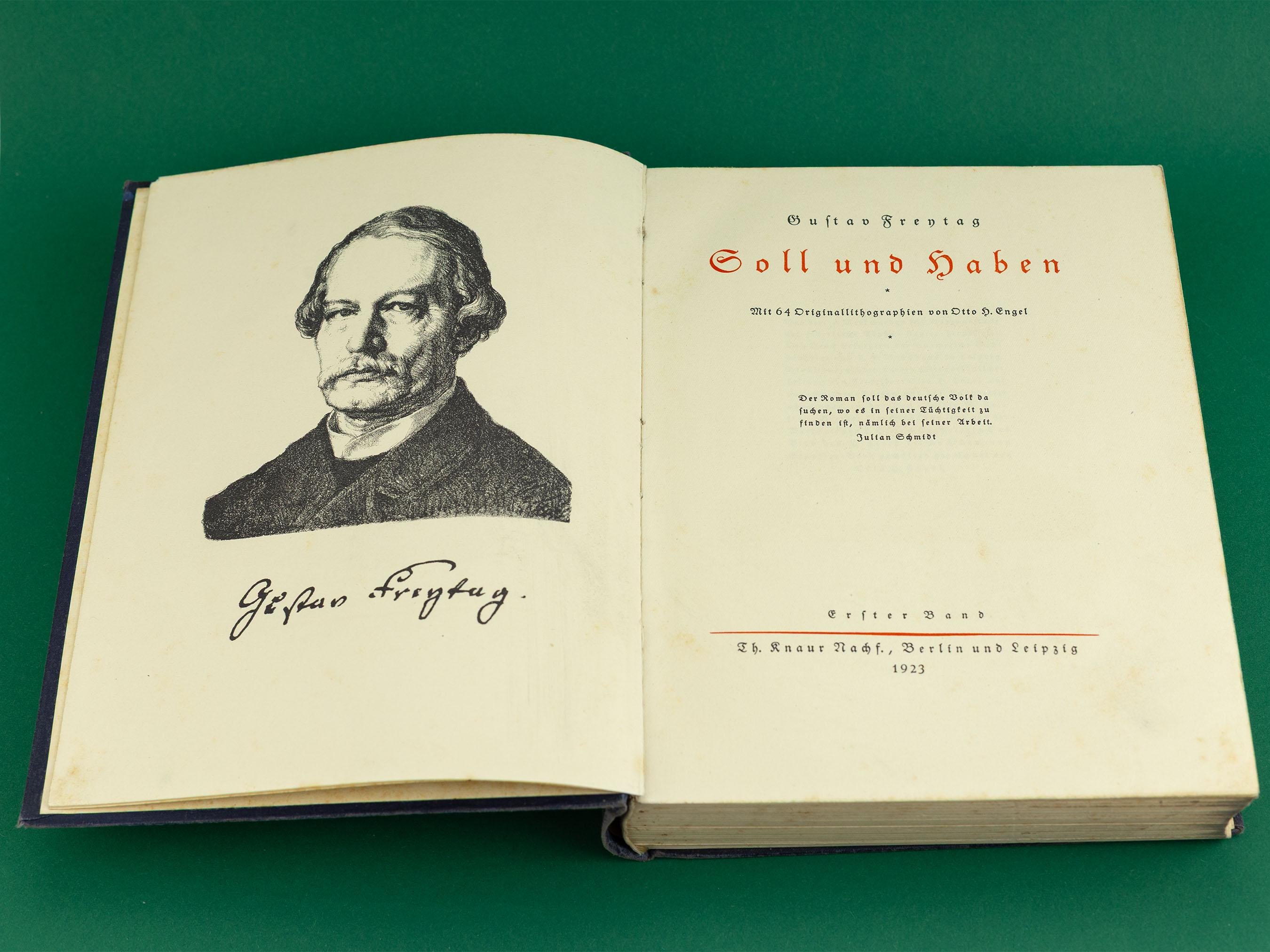 1923 Antique German Book Gustav Freytag Soll und Haben Illustrated Hardcover