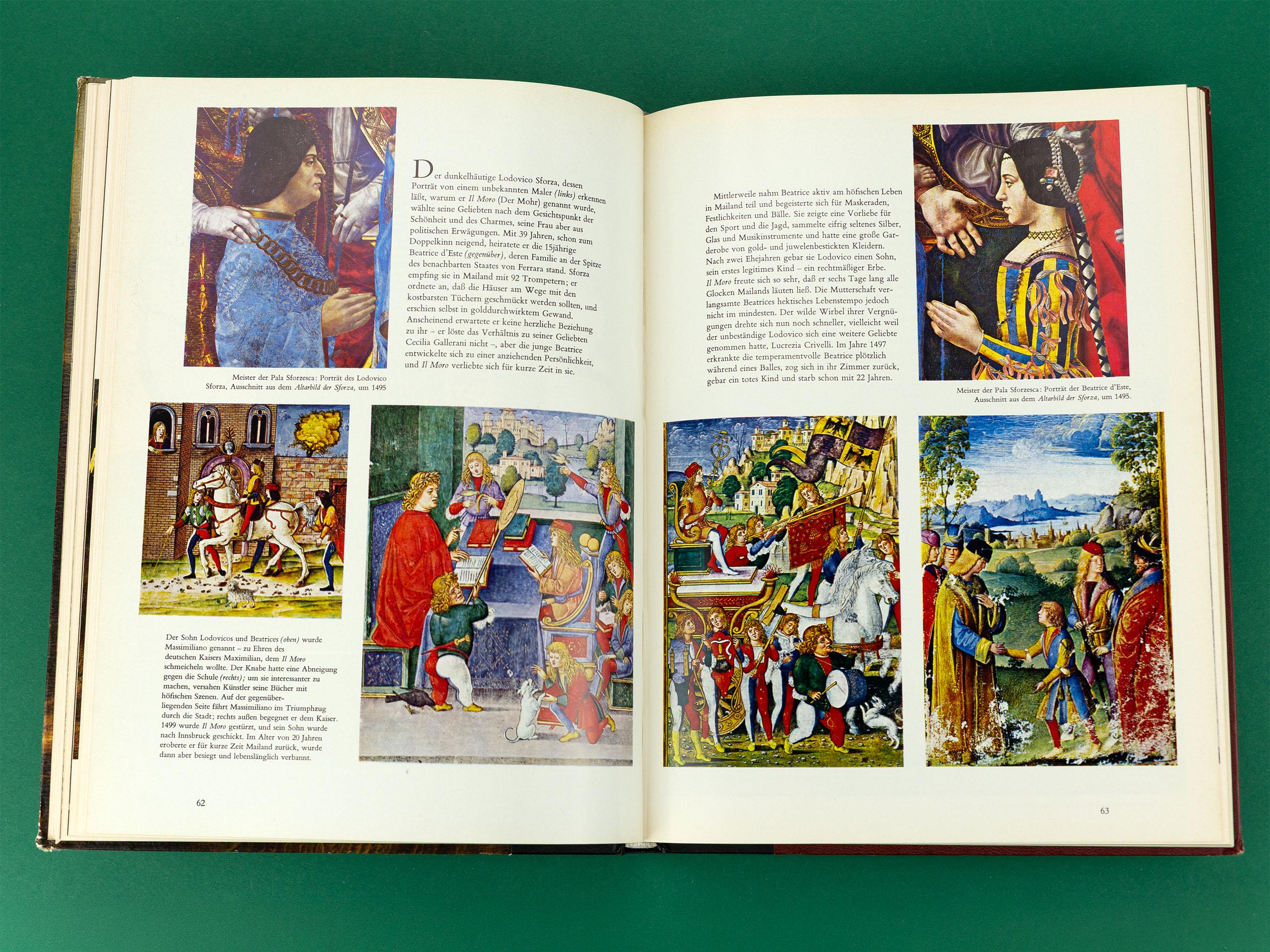 Vintage album artystyczny „Leonardo da Vinci und seine Zeit (1452–1519)” z kultowej serii Time-Life „Die Welt der Kunst”. Duży format, twarda oprawa i bogato ilustrowane wnętrze z reprodukcjami dzieł Leonarda da Vinci oraz jego epoki. Książka idealnie sprawdzi się jako dekoracyjny element wnętrza, coffee table book do salonu, gabinetu lub pracowni artystycznej, a także jako prezent dla miłośnika sztuki i historii renesansu. Egzemplarz w stanie vintage z widocznymi śladami użytkowania na okładce, wnętrze czyste i kompletne, ilustracje zachowane w bardzo dobrym stanie. To nie jest książka do intensywnego czytania, lecz estetyczny obiekt kultury wizualnej, który buduje klimat półki i przestrzeni. Wydanie niemieckojęzyczne, publikacja Time-Life International, lata 70. XX wieku.